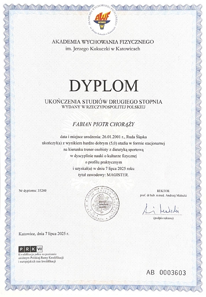 Na co dzień łączę odpowiednio zbilansowaną dietę z regularną aktywnością, dbając o zdrowie psychiczne i fizyczne. Od pięciu lat zajmuję się odpowiednim żywieniem oraz kształtowaniem sylwetki. Pozwoliło mi to lepiej zrozumieć, jak ogromny wpływ mają codzienne nawyki na wygląd, energię i pewność siebie. Zdrowe odżywianie to nie chwilowy cel a styl życia, sposób na połączenie troski o ciało i umysł.